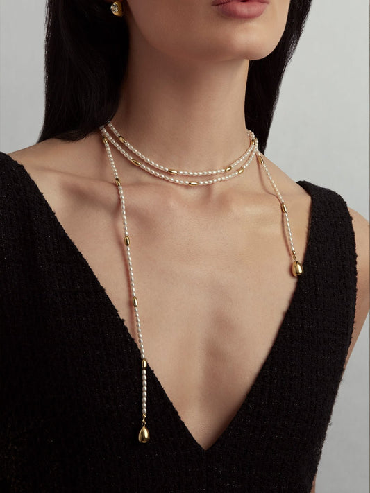 14K gold plated Lustrous Teardrop Pearl Lariat