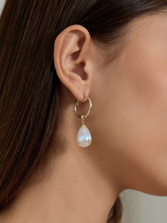 Loire Mermaid Pearl Drop Hoop Earrings