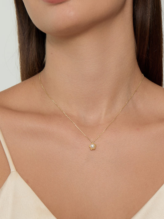 14K Gold Plated Silver Pearl Blossom Necklace